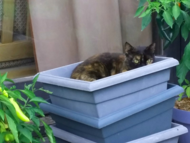Posted on Jun 13, 2017Jul 5, 2017 by booksdogsandcats Isn’t this a wonderful summer dish?Parsley,mint and (an obvious highly stressed)cat…